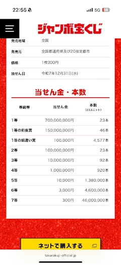 おはようございます☀ ねぎです。 12月といえばってものいくつかあると思うんですけれど 私が1番楽しみにしていることは、、じゃらじゃらじゃらじゃんっ!! ✨✨年末ジャンボ✨✨ ちょうど去年から買い始めた宝くじ✨ 一度買ってしまったら1等が当たるまで買い続けなければという使命があるので 今回も私は買いました😌 私はいつも連番2つとバラを10枚買います トータル9000円!妥当ではないでしょうか、、! ちなみに何等がいくらとか全く調べておりません笑 ということで今から調べます 7億円ですって✨✨夢がありますわ!!♡♡♡ 前後賞とか、2等とかでも良いけれどやっぱ1等当てたいよね✨ いつもはネットで買うんだけど今回は宝くじやさんで買って ちゃんと自分でこれがいいです!ってやったから いつもより当たる自信ある✨ この前のクリスマスマーケットでちゃんとサンタさんにお願いもしました 願掛け🙏 これであたり間違いないね✨結果は12/31✨ ぜひ結果を楽しみに待ってて下さい😌